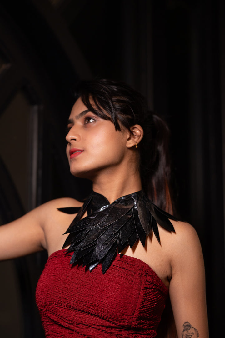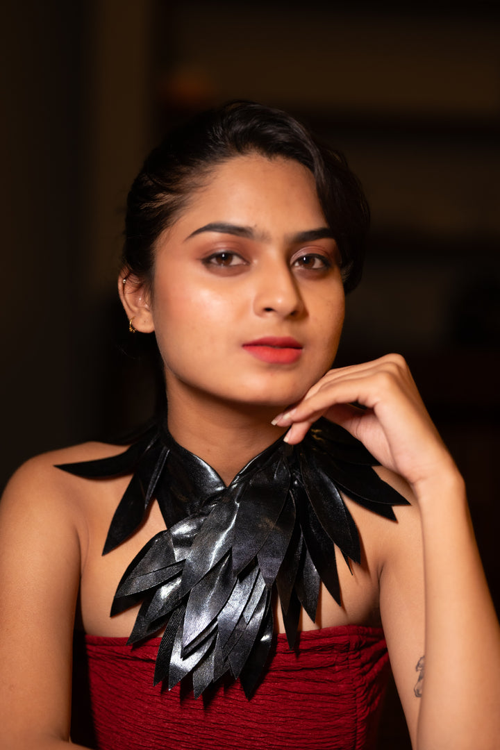 Raise your style with our flawless metallic foil neck piece, astonishingly created with each leaf slice flawlessly.