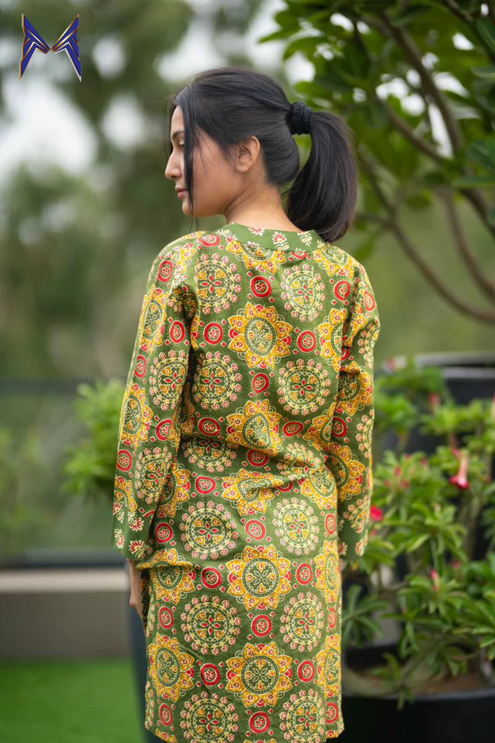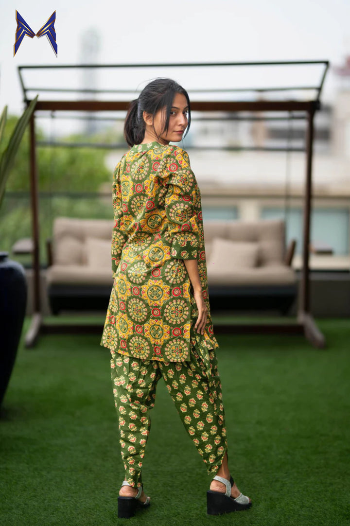 Green Kurti Dhoti Pattern Co-Ord Set