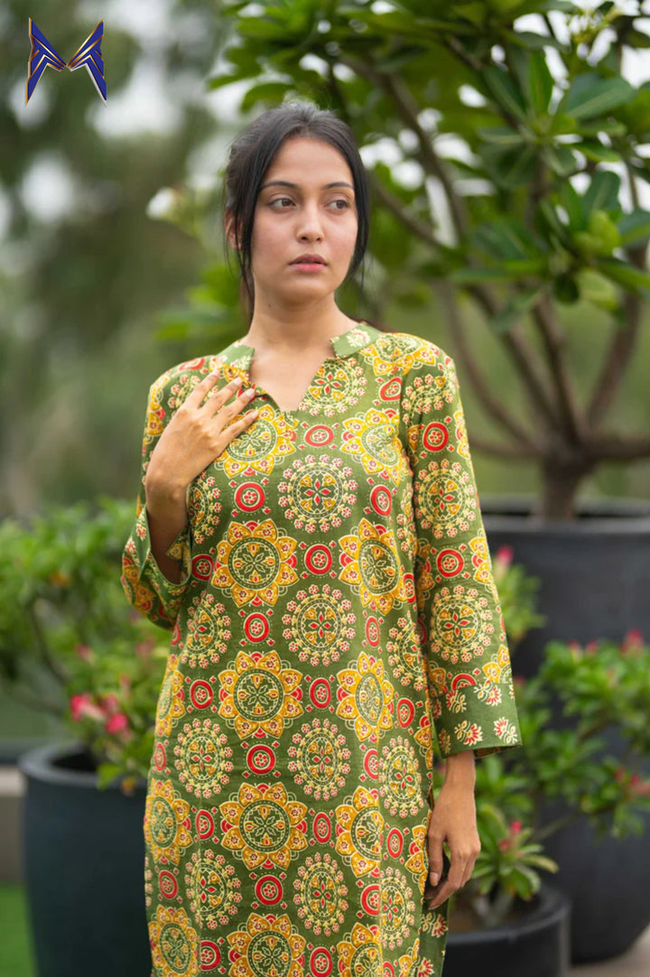 Floral Printed Collar Neck Kurti & Co-Ord Set