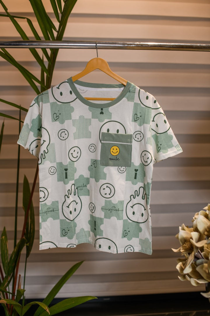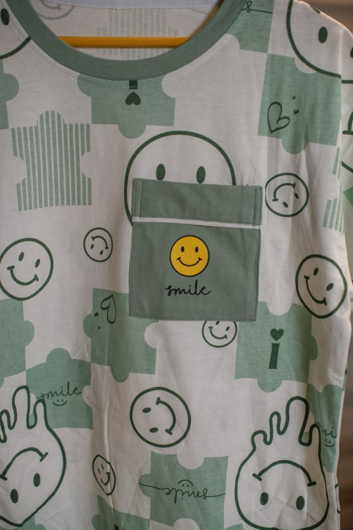 Cheerful Dreams Nightwear Set with Playful Smiley Print on t-shirt