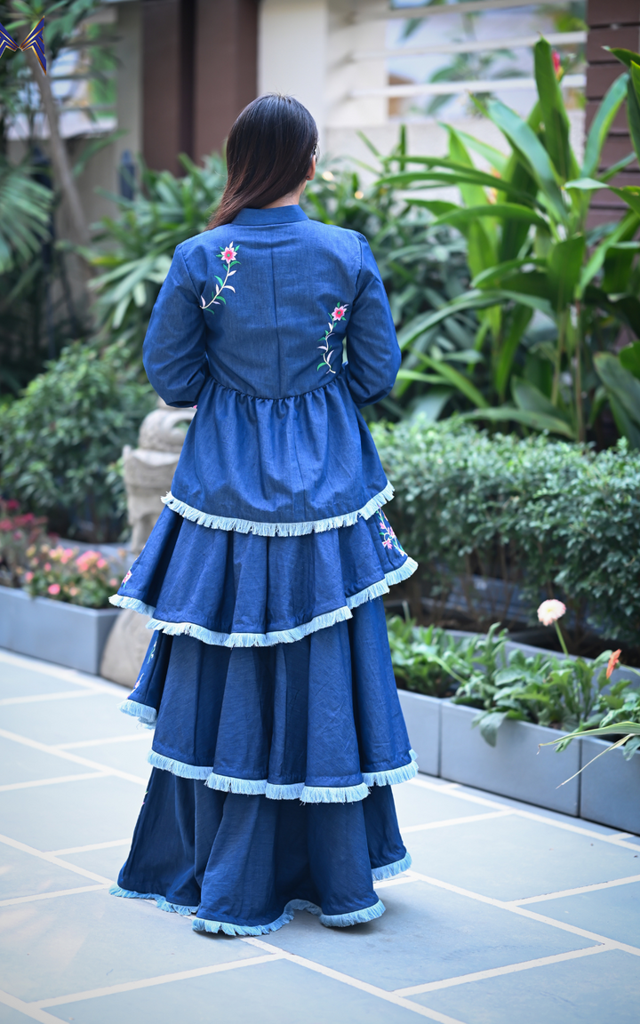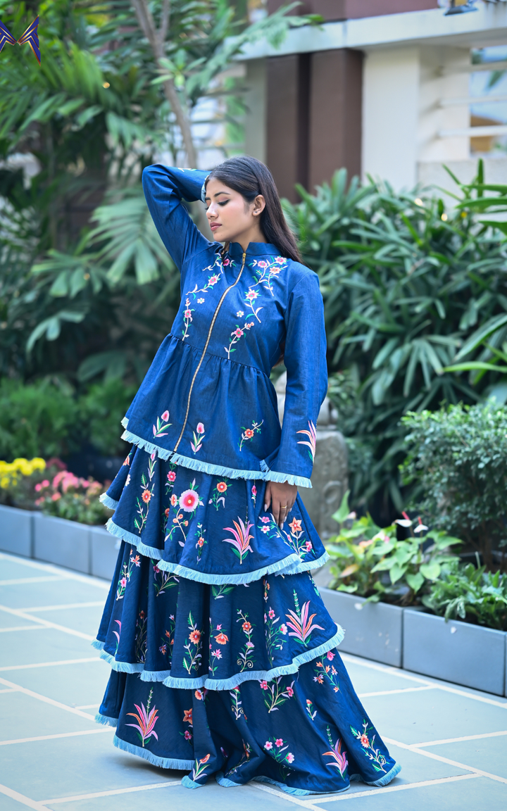 The Garden of Grace Kalidar Dress beautifully blends traditional designs with a modern Western touch. Featuring delicate floral embroidery and a flowing Kalidar silhouette, this dress captures the essence of nature-inspired elegance.