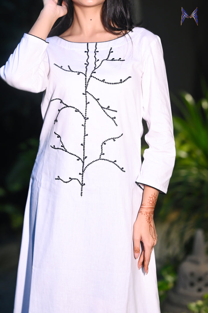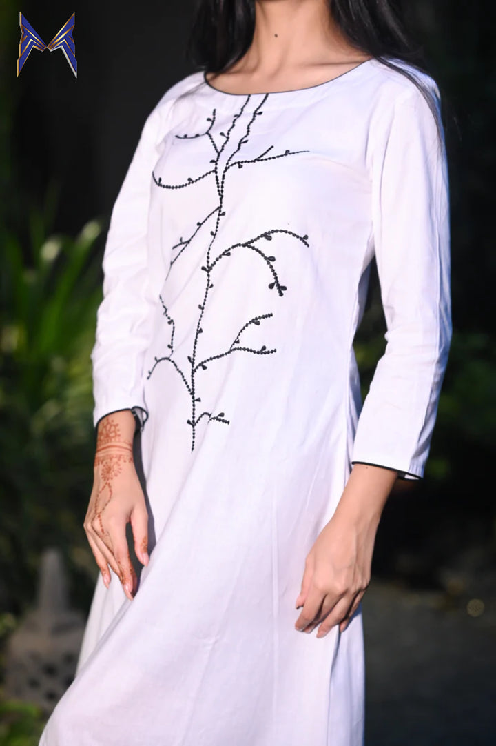 Black stem embroidery at the neckline, adding a touch of sophistication