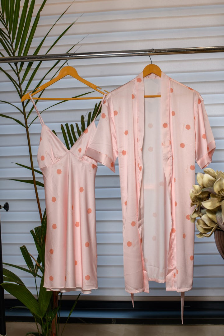Stylish Peach Night Gown With Cozy Robe Ensemble