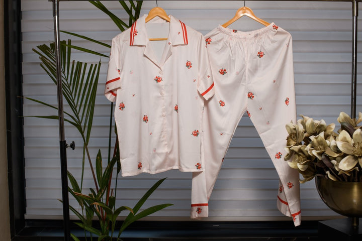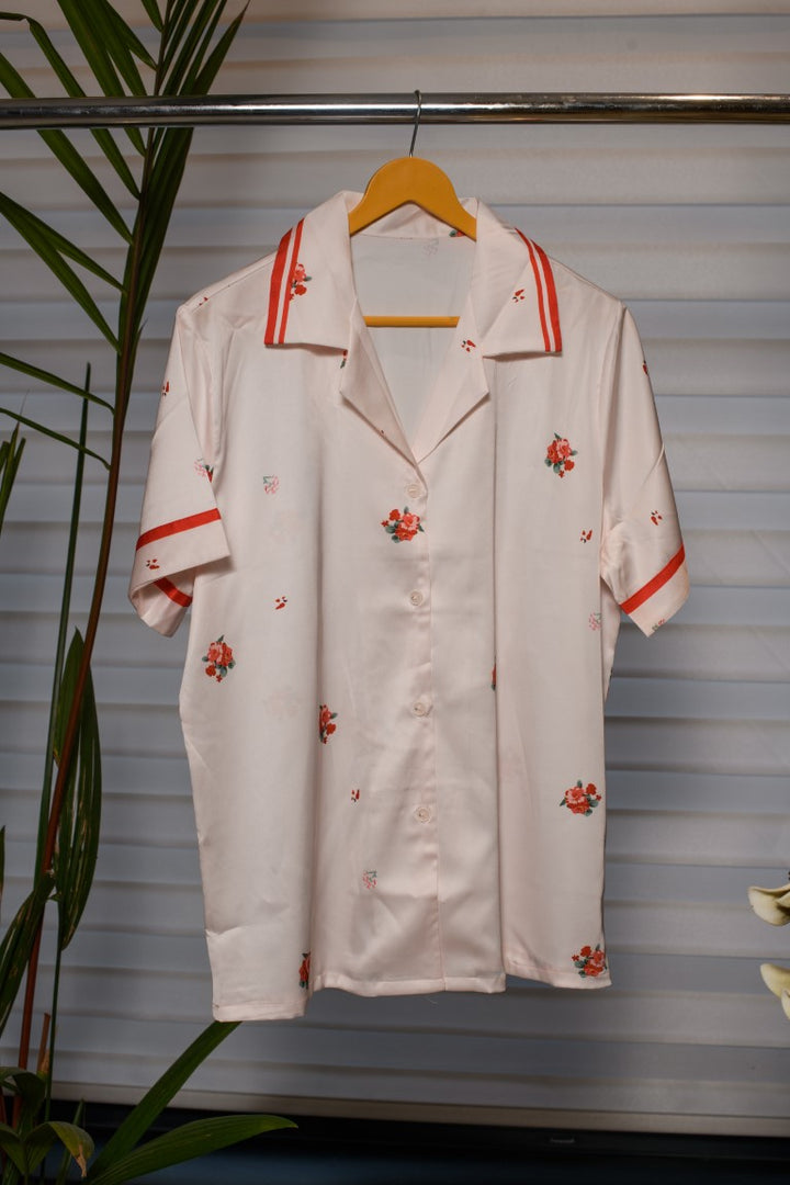Blossom Baby Pink Lounge Wear with Vibrant Red Flower Print