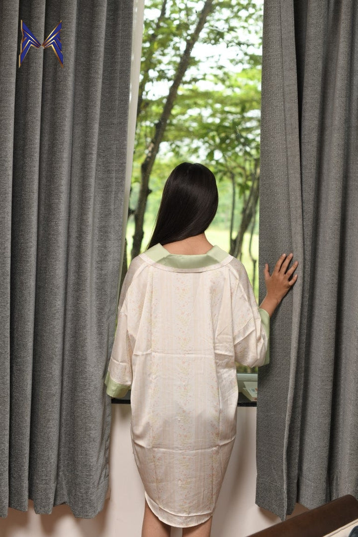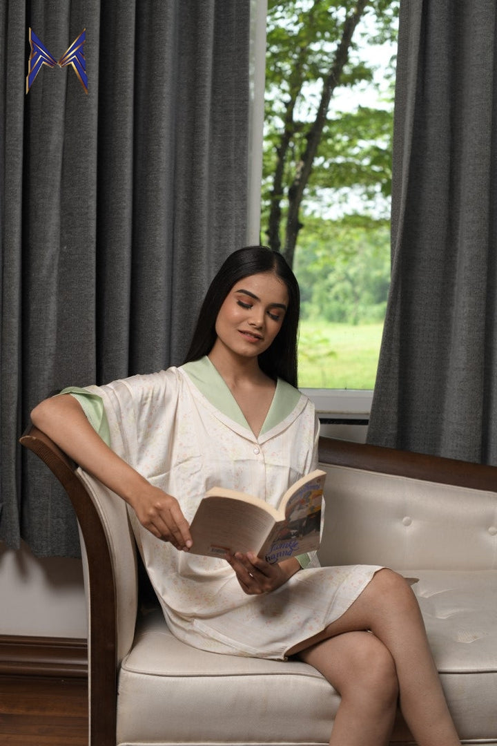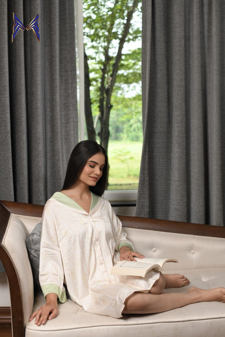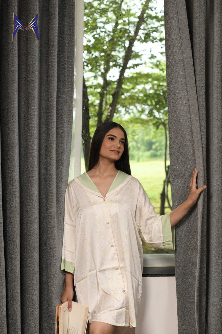 Nightwear Chic with Subtle Floral Whispers and Light Green Accents