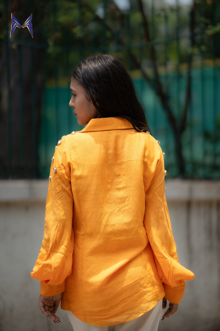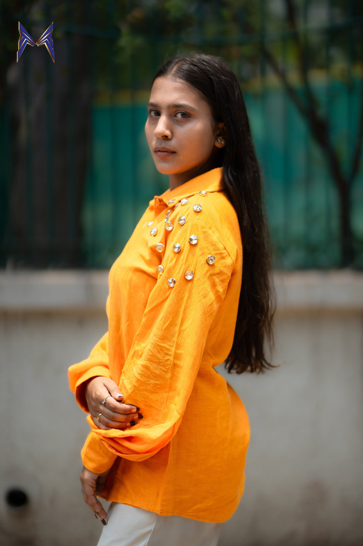 Embrace the vibrant energy of summer with our Sunstone Elegance Women's Shirt. Crafted from premium linen fabric, this stunning orange shirt is designed to keep you cool, comfortable, and stylish all day long.